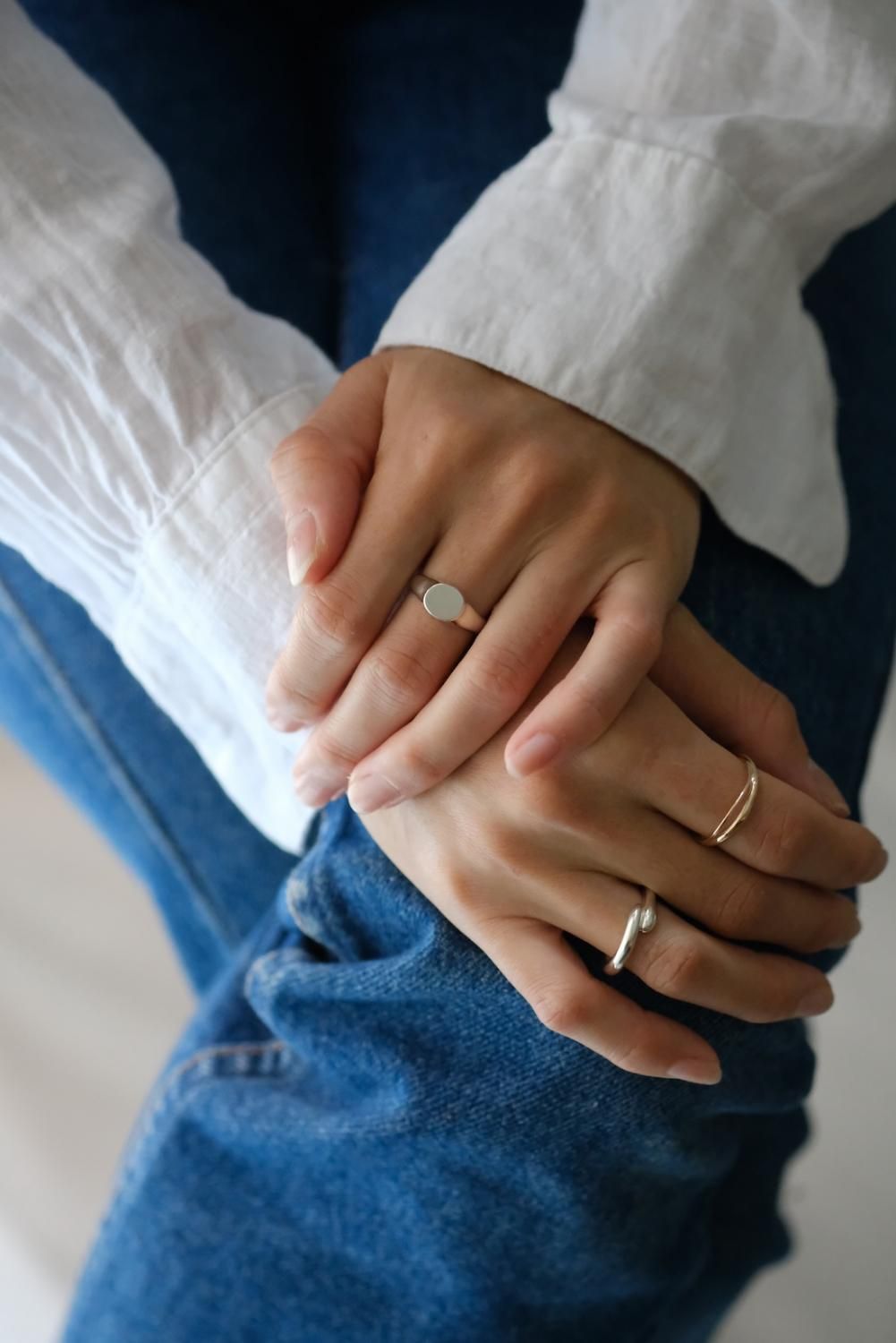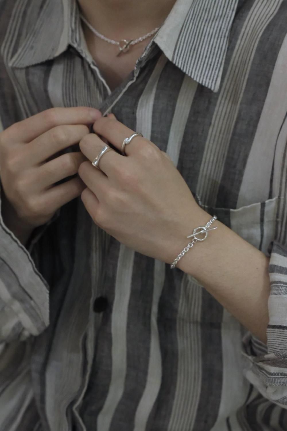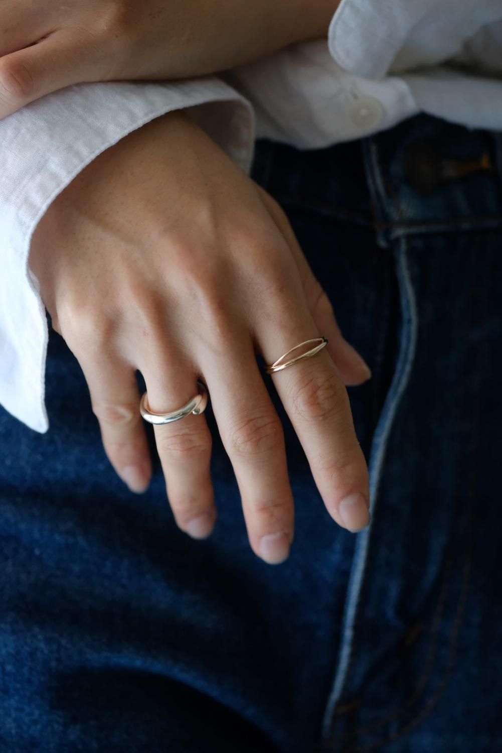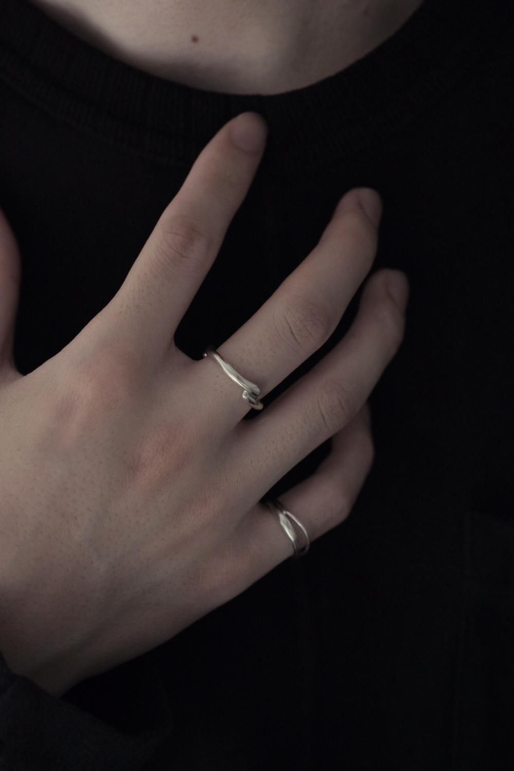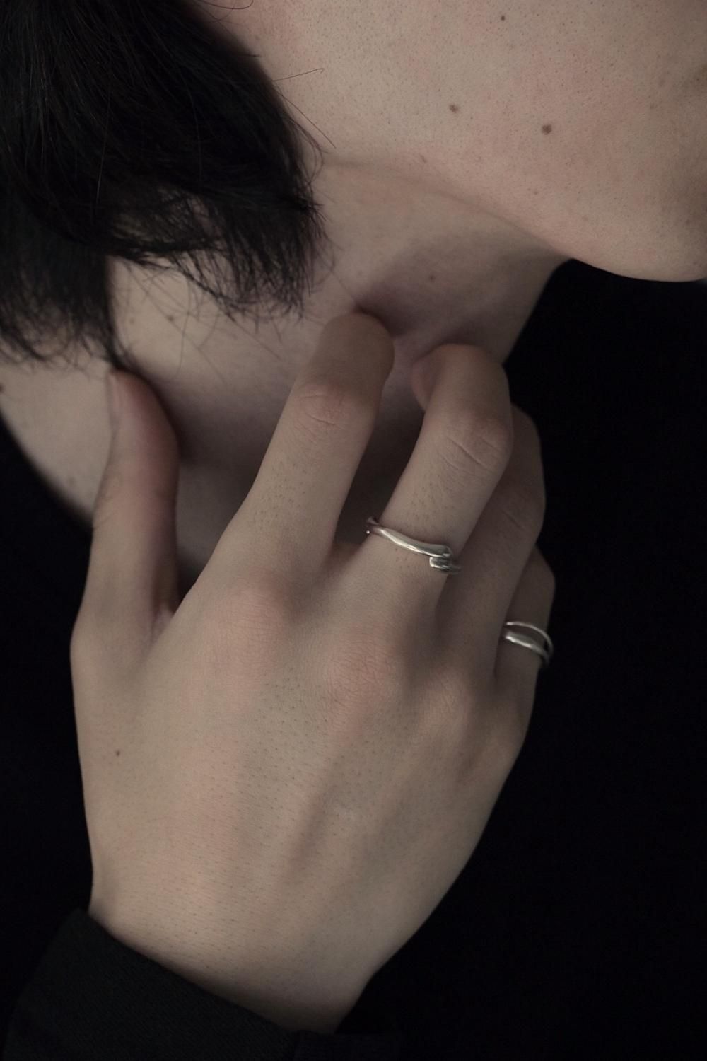 交わる2箇所はそれぞれ雰囲気を変え、角度によって異なる表情のアイテムです。