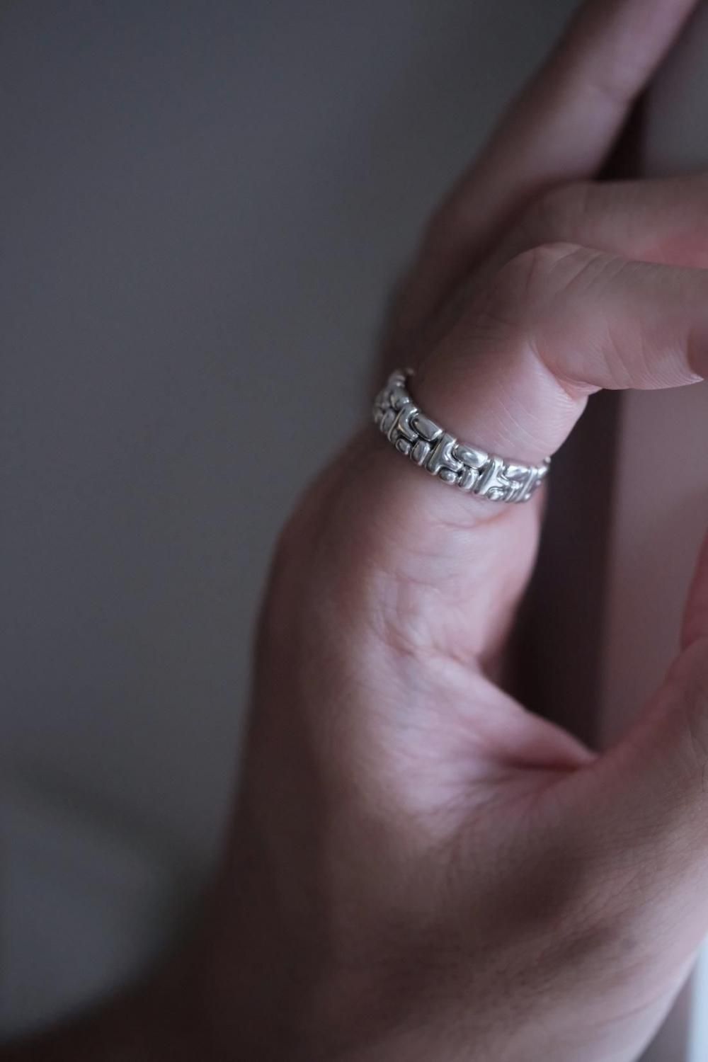 ※幅のあるリングの為、ご自身のサイズより2-3号アップのものをお選び頂く事をお勧めします。
