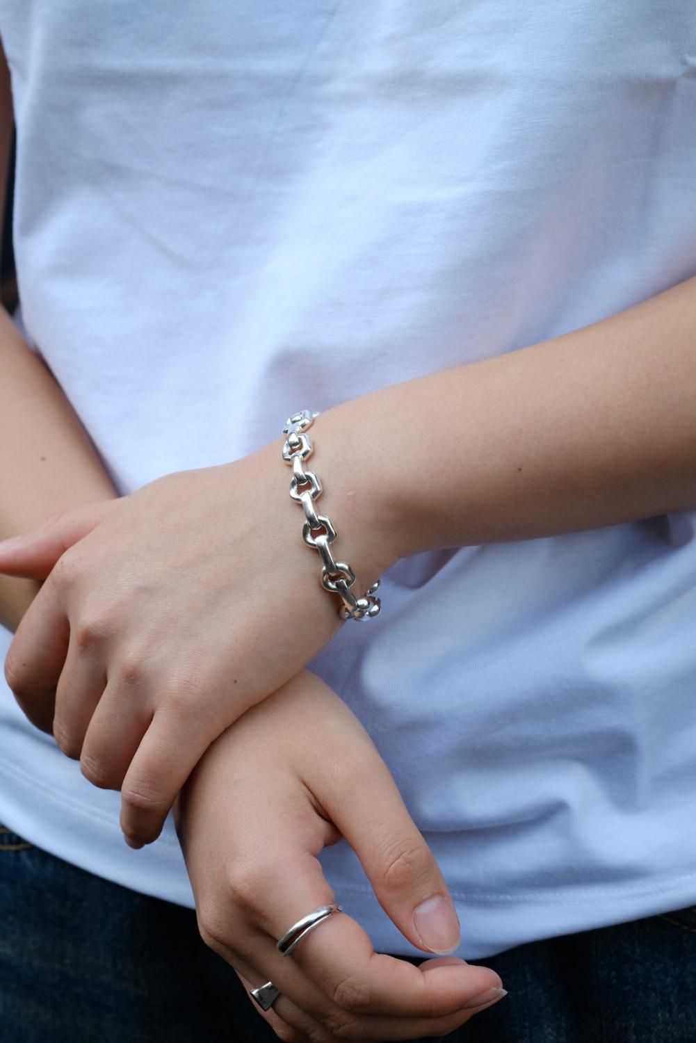 程よい存在感とシルバーの艶が手元を引き立て、洗練された印象を与えます。
