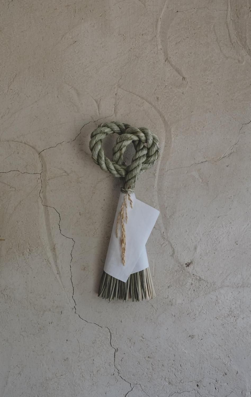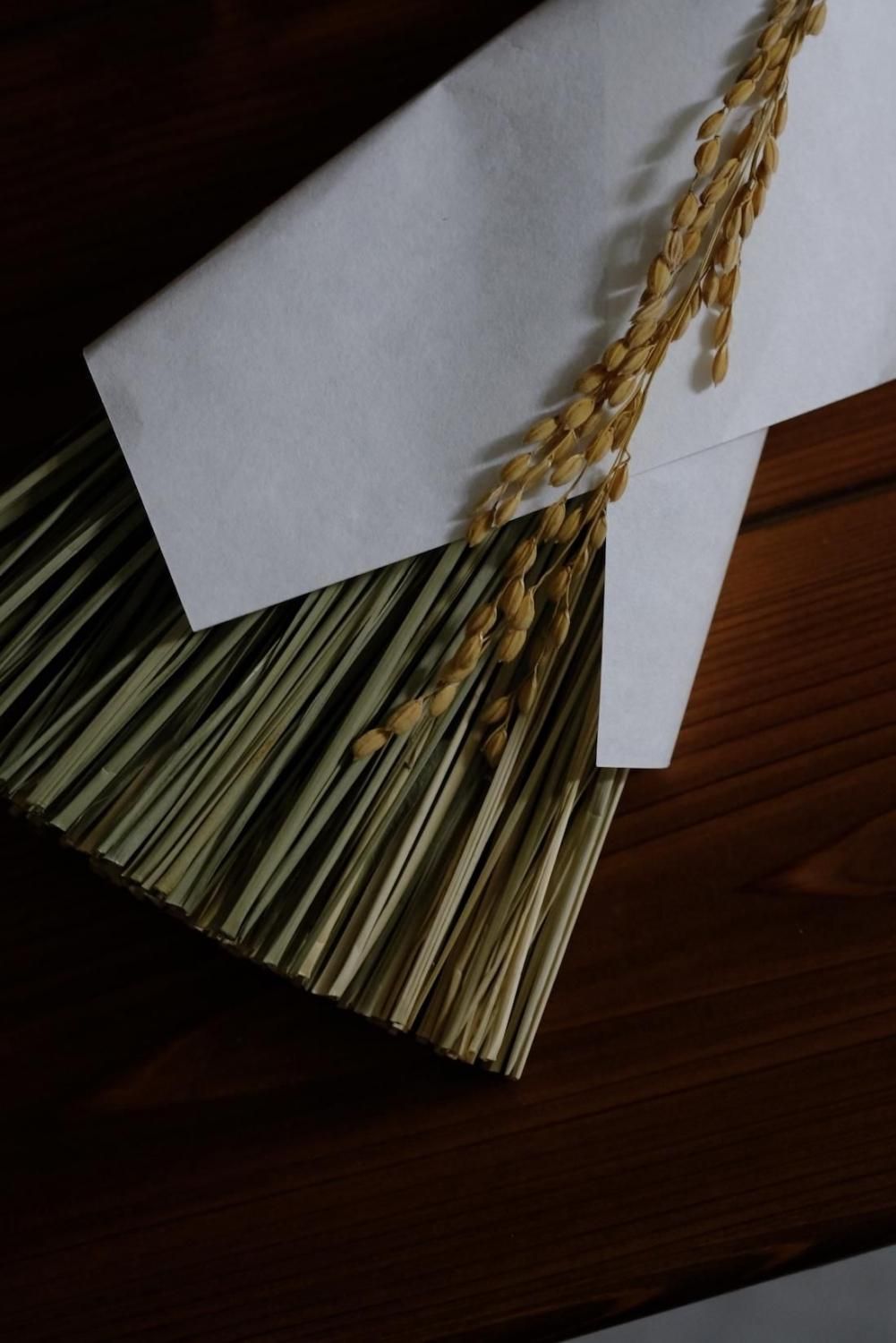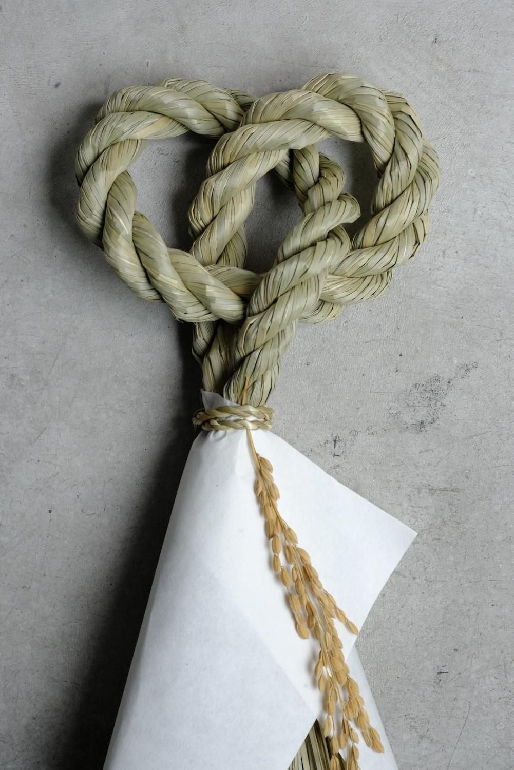 ふたつの輪が連なり、しっかりと結び、和紙を添えています。
